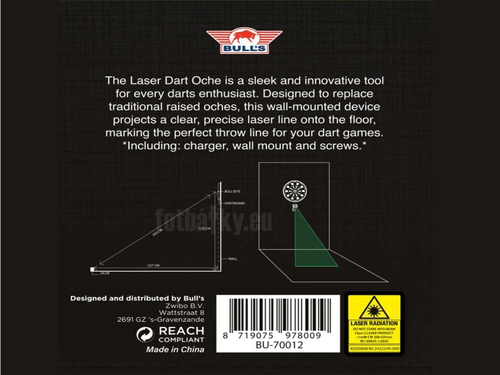 Bull’s Green Laser Oche je ideální volbou pro hráče, kteří chtějí přesné vymezení odhodové vzdálenosti, moderní řešení bez nepořádku na podlaze a maximální pohodlí při každé hře.