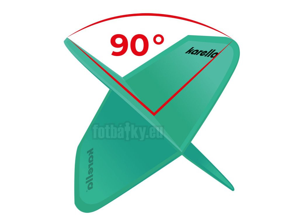 Předtvarovaná konstrukce s přesným úhlem 90° zajišťuje rovnoměrnou aerodynamiku a konzistentní let – což znamená vyšší přesnost hodů a lepší konzistenci zásahů.