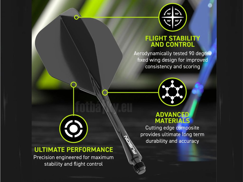 Správný úhel křídel letek je klíčový pro stabilitu. Fusion systém udržuje přesné 90°, což výrazně přispívá k tomu, že šipka letí stejně hod za hodem.