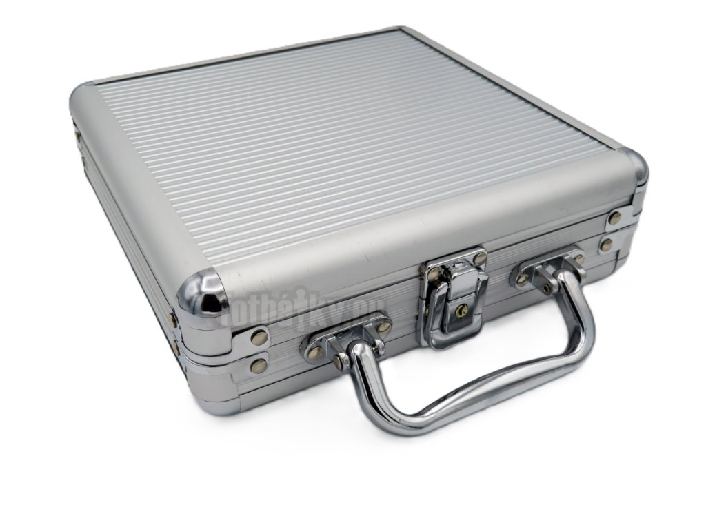 - Kvalitní hliníkový kufřík : Pevný, uzamykatelný kufřík (2 klíče) chrání sadu a zajišťuje její snadné přenášení. Rozměry kufru: 21 × 21 × 6,5 cm .