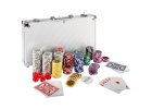 Pokerová sada ve stylovém hliníkovém kufříku stříbrné barvy obsahuje 200 profesionálních 11,5 gramových žetonů.