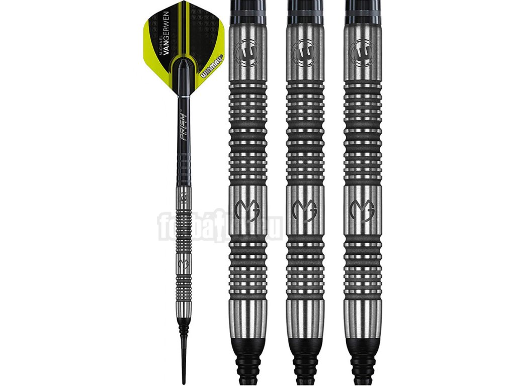 Autentický podpis Michaela van Gerwena v nejnovějším designu – steelové profi šipky pro hráče, kteří chtějí maximální stabilitu a jistotu v ruce. Série MvG Authentic sází na precizně zpracovaný rovný barrel z 85 % wolframu, výrazný drážkovaný grip pro konzistentní úchop a gravírovaná loga Winmau a MvG přímo v těle šipky.