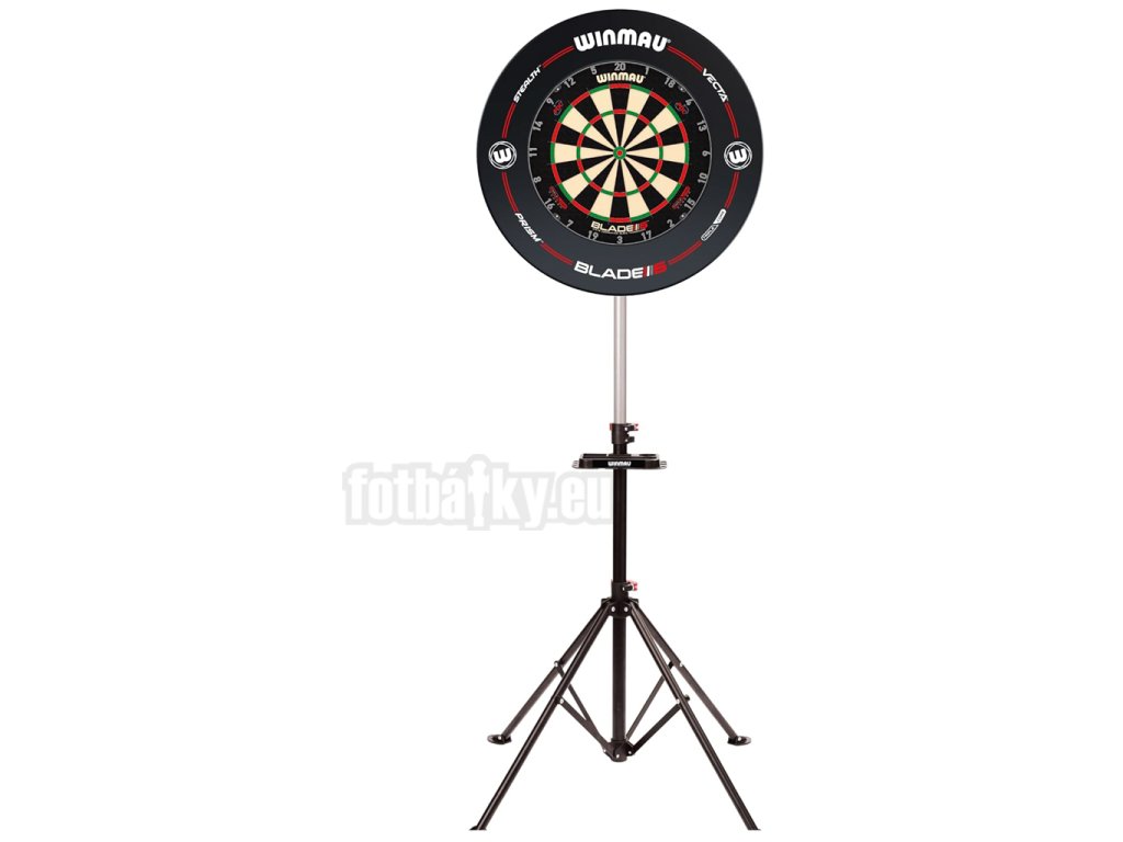 Oproti běžným stojanům vyniká model Xtreme 2 především svou 4nohou konstrukcí, která zajišťuje výrazně lepší stabilitu než klasické třínohé varianty. Pevná černá ocelová konstrukce působí robustně, spolehlivě drží terč na místě a zároveň je připravená i na časté přenášení. Velkou výhodou je také plynule výškově nastavitelný rám, díky kterému stojan snadno přizpůsobíte nejen standardní soutěžní výšce, ale i dětem, rekreačním hráčům nebo hře na nerovném povrchu.
