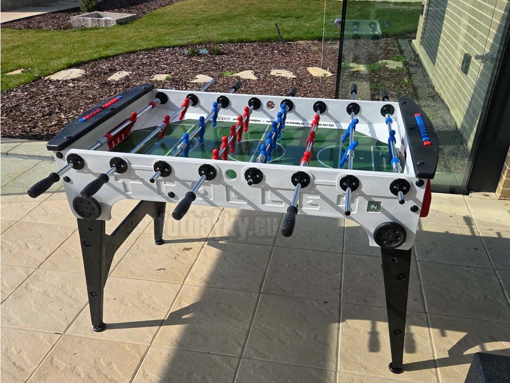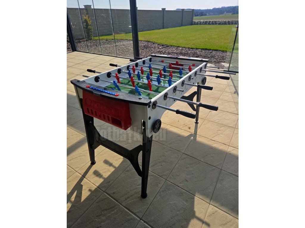 Tento profesionální a odolný fotbálek vůči povětrnostním vlivům, který je určen pro venkovní použití, s prakticky sklopnou konstrukcí nohou stolu, může být použit kdekoliv !!